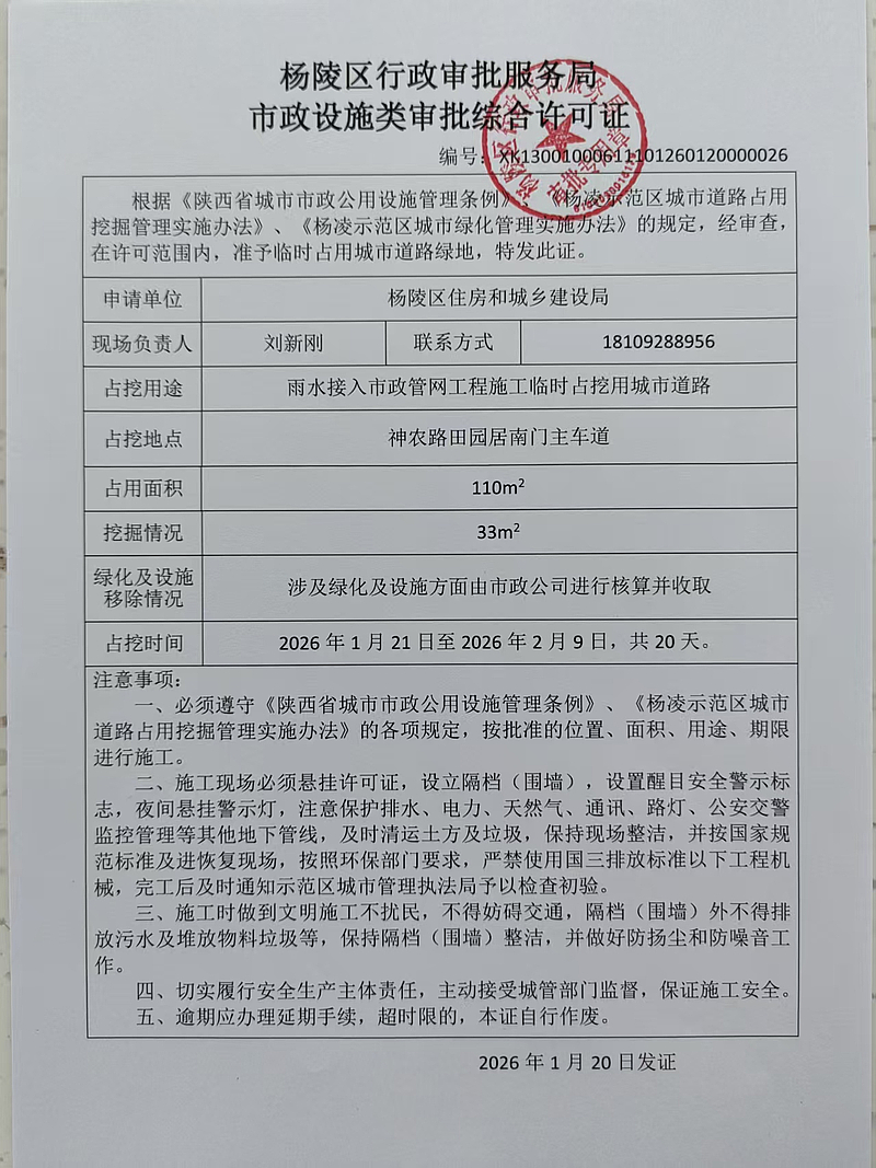 占用挖掘城市道路审批公示(雨水接入市政管网工程施工临时占挖用城市道路)