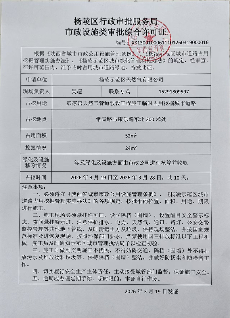 占用挖掘城市道路审批公示(彭家窑天然气管道敷设工程施工临时占用挖掘城市道路)