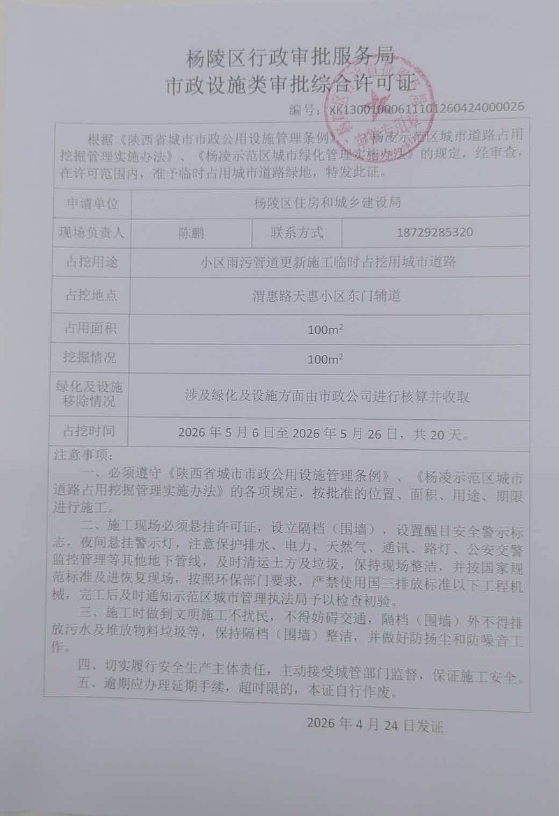 占用挖掘城市道路审批公示(小区雨污管道更新施工临时占挖用城市道路)