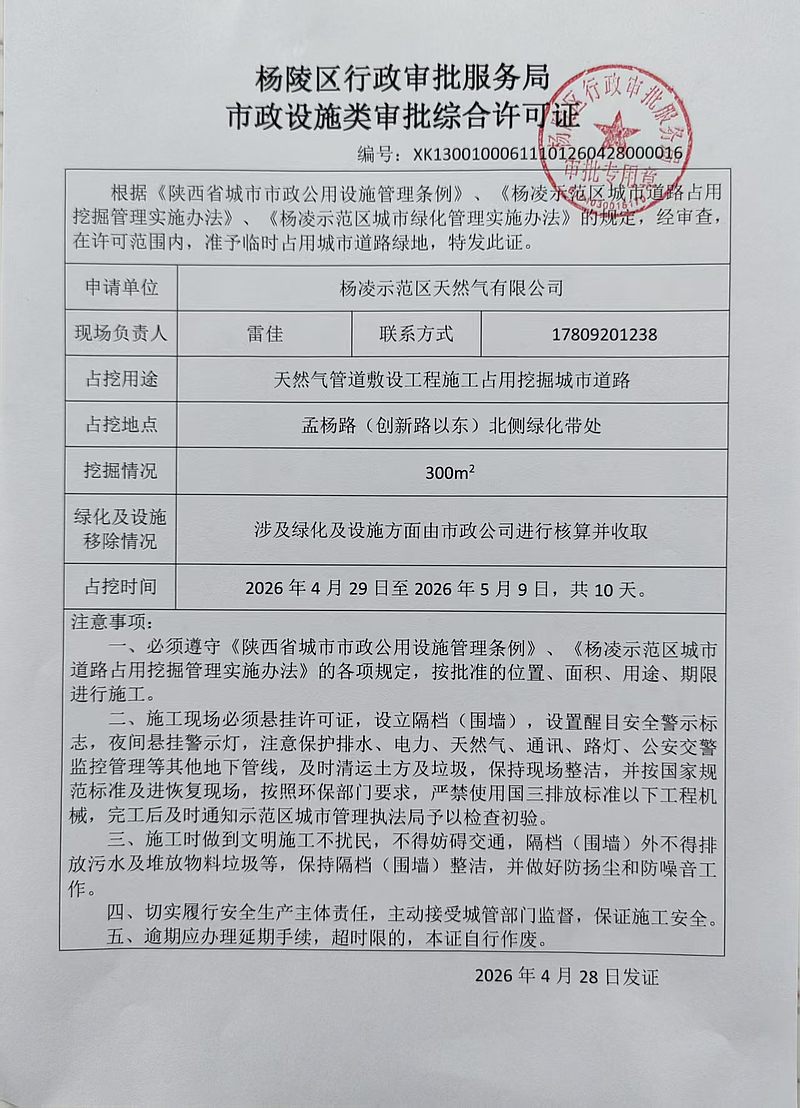 占用挖掘城市道路审批公示(天然气管道敷天设工程施工占用挖掘城市道路)