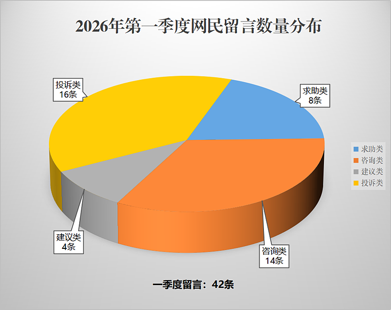 咨询类共14条,占比33.3%;求助类共8条,占比19%;投诉类共16条,占比38.1%;建议类共4条,占比9.5%。