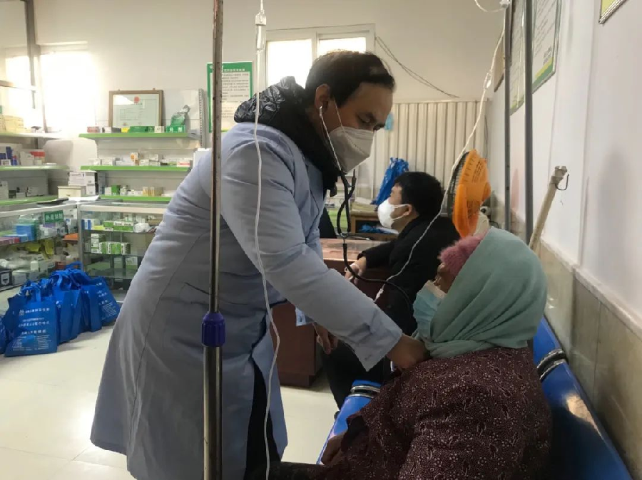 记者采访当天,赵晗刚刚休假,身体已经出现类似新冠的症状,有群众打电话专门找他看病、办理事务,为了保证精神状态,他给自己挂上吊瓶,坚持上班。“作为一个医生,要是给群众做不到力所能及的服务,我问心有愧。”随后,记者又来到揉谷镇新集村卫生室,小小的房间里,有五位病人正在输液。这里唯一的乡医李海平来回走动,细心照看他们。