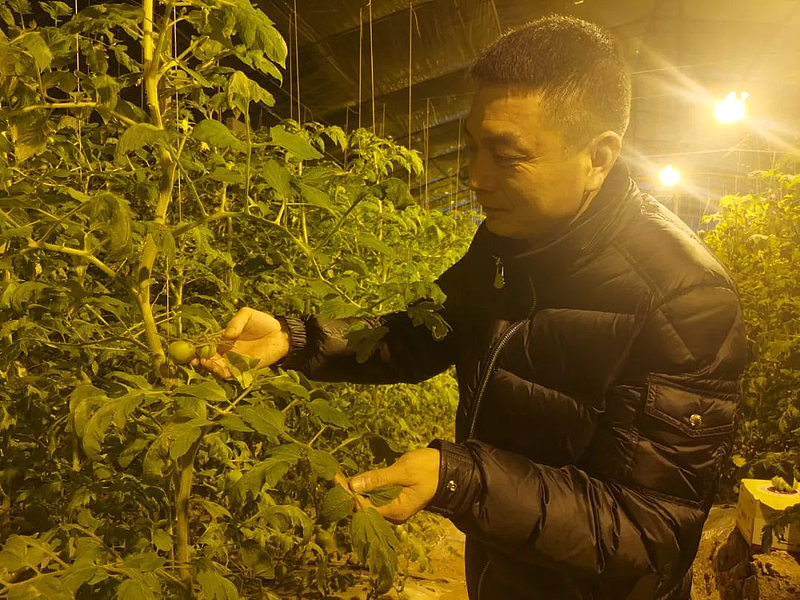 1月18日,走进杨陵区揉谷镇田东村的双拱双膜温室大棚,关不住的绿意瞬间在眼前铺开,层层叠叠的绿叶下,翠绿的西红柿像一串串珍珠从藤蔓上垂下来,场景煞是喜人。