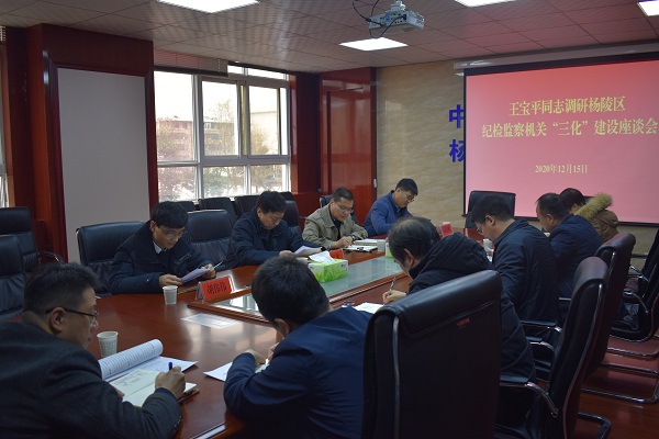 王宝平一行先后赴五泉镇纪委、大寨街道纪工委,实地查看了镇办纪委办公场所及谈话场所,翻阅了工作台账及案卷资料,详细了解了人员配备情和干部队伍建设现状,并就推进基层纪检监察机关“三化”建设工作与区纪委监委领导班子进行了座谈。他指出,杨陵区各级纪检监察机关能够对标对表全省关于加强基层纪检监察机关“三化”建设的工作要求和示范区纪检监察工委的安排部署,狠抓落实、稳步推进,各项工作取得了较为明显的进步。他要求,各级纪检监察机关要坚持问题导向,及时查漏补缺,补齐短板弱项,通过基础设施标准化、干部队伍专业化推动工作程序规范化,切实提高基层纪检监察机关工作质量和水平。