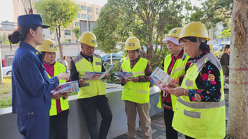 活动期间,宣传人员发放宣传资料,结合当前火灾特点,向环卫工人讲解火灾预防、报警、初期火灾扑救及火场逃生自救知识;同时发放消防宣传手册,助力其通过图文直观掌握消防知识。针对环卫工人提出的日常消防疑问,宣传人员逐一耐心解答,并动员他们在工作中提醒群众关注消防,不将烟头直接丢入垃圾箱,从源头预防火灾,真正把消防安全送到家。